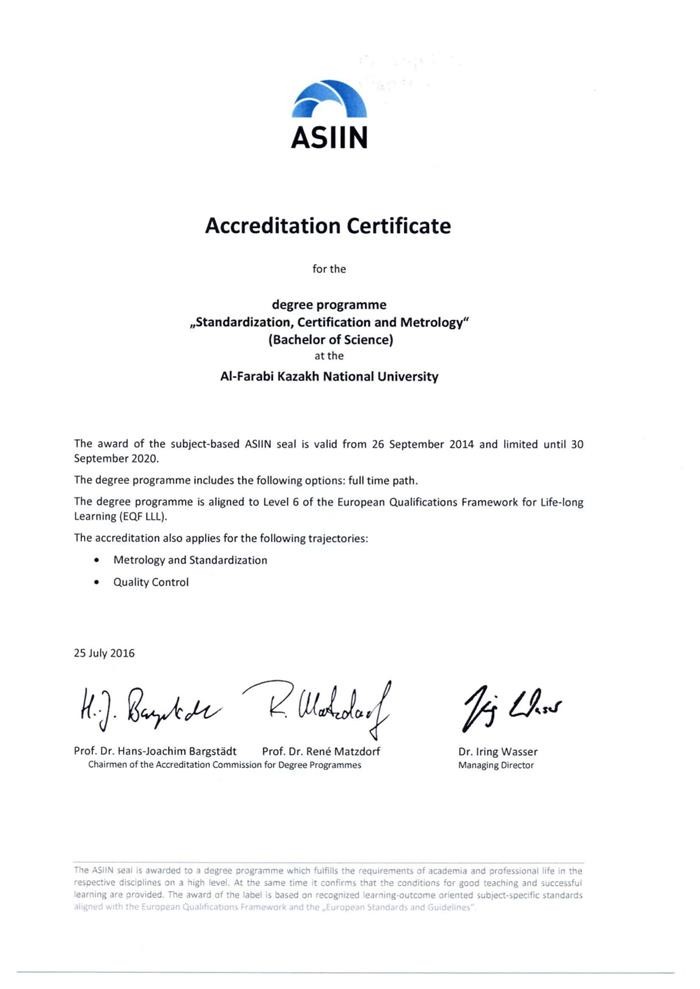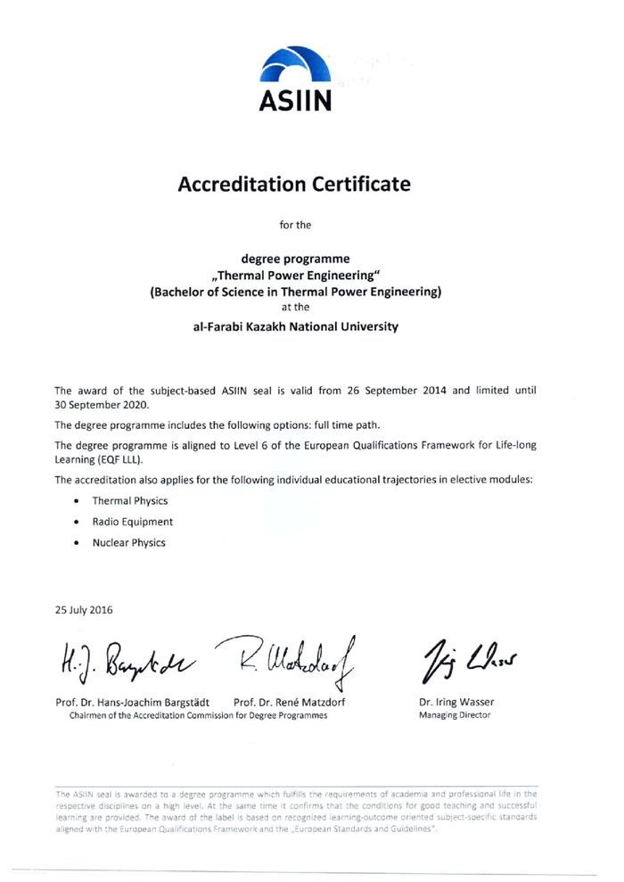 ASIIN International Certificate in the specialty "5V071700 Heat Power Engineering" 25.07.2016 |