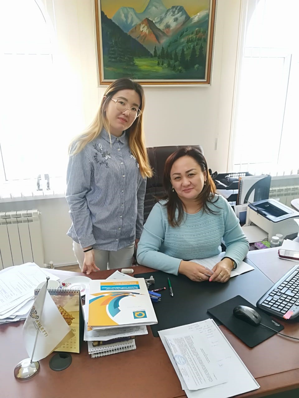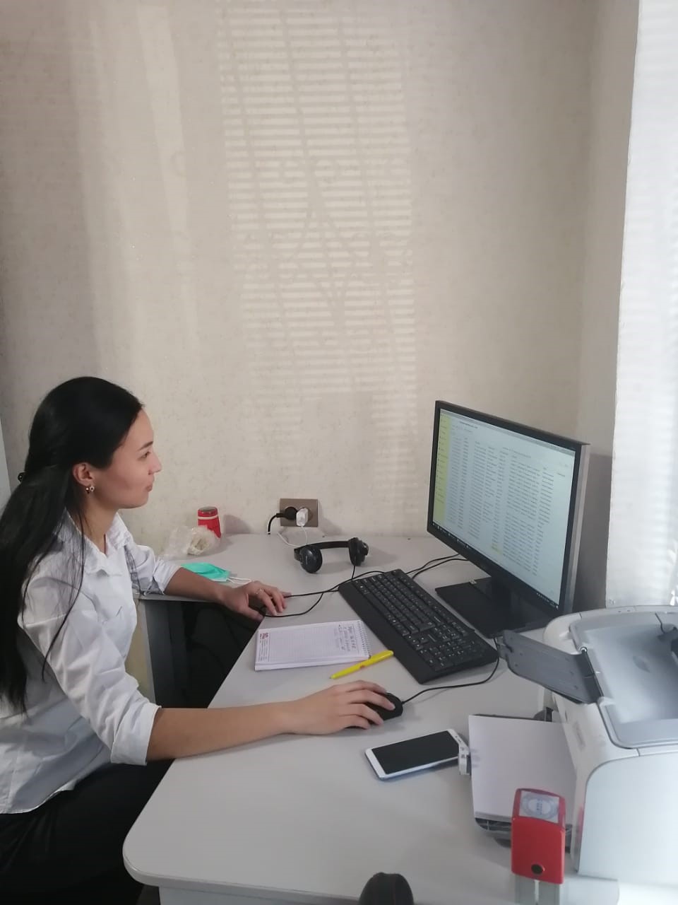 A student of the Department of information systems Kákim Perızat Kádirtaıqyzy passes a production practice in "Áýletti" LLP.