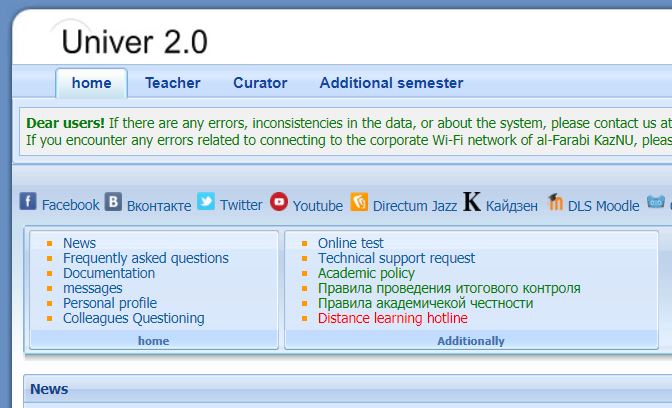 Dear teachers and students !!! On the main page of the Univer 2.0 system are contacts of distance learning specialists !!!! |