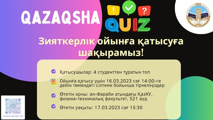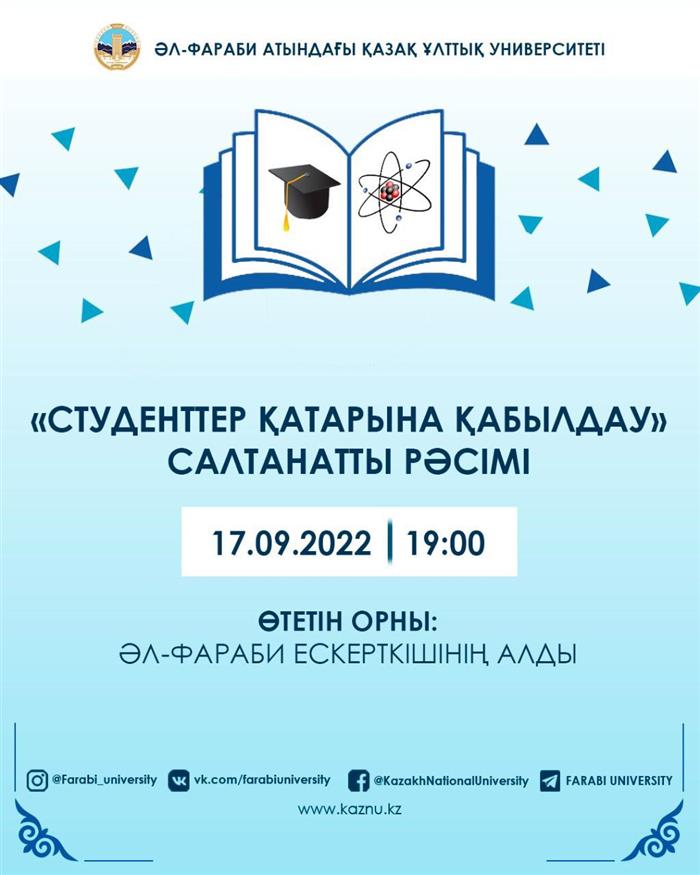 At the Al-Farabi Kazakh National University on the Day of the First President of the Republic of Kazakhstan on November 23, a solemn ceremony of awarding the winners of the VIII Republican competition "MEN ZHASTARGA SENEMIN!" in online format! https://youtu.be/dseiyrs_DxU |