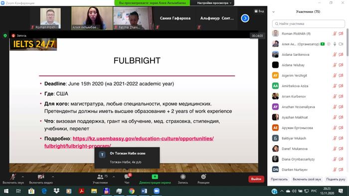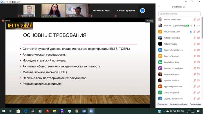 On November 13, at 20.00, a master class was held by Meruert Smagulova, the founder of IELTS 24/7 courses, a graduate of the Department of recreational geography and tourism.