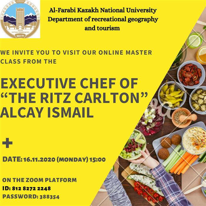 On November 16, 2020, at 15.00 p.m a Master class was held by the Ritz-Carlton executive chef Alcay Ismail. AlcayIsmail shared the secrets of cooking. The master class was attended by 30 people.