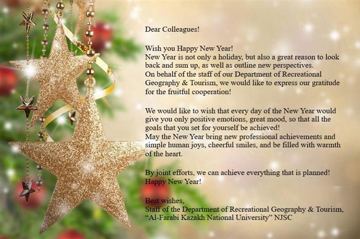 New year Congratulations of the Department of Recreational Geography and Tourism staff