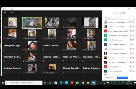 On March 26, 2021, at 14:00, a master class was held on the ZOOM platform "Restaurant business after COVID 19". There were 45 people present. The organizer of the master class was a teacher of the department of "Recreational Geography and Tourism" Bazarbekova Madina Medeuovna.