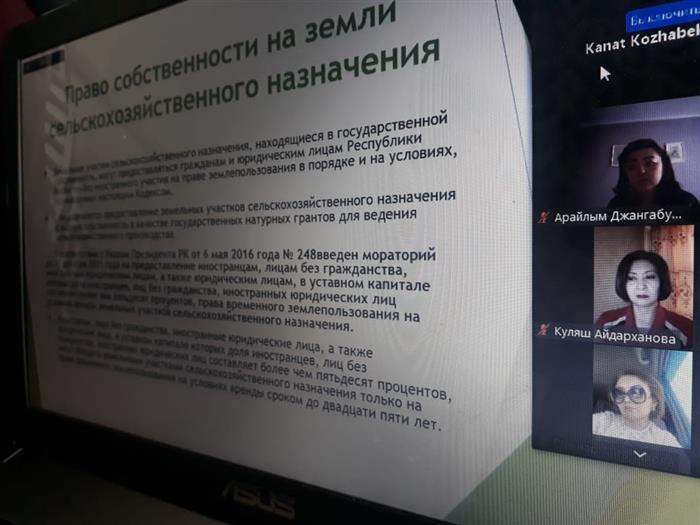 18.06. 2020 at 12 o'clock, Professor Doctor of Law, Erkinbaeva Lazzzzat Kalymbekovna held an online webinar on "Agricultural lands: legal issues of their use and protection."