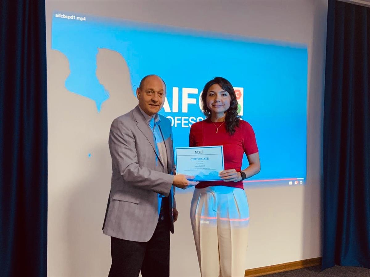 Raigul Doszhan and Laura Kuanova the team members of the Islamic Finance Centre have taken certificates of the PCPD AIFC that have completed Islamic Finance Qualification (IFQ) Training program, 72 hours at the AIFC Bureau for Continuing Professionals Development.