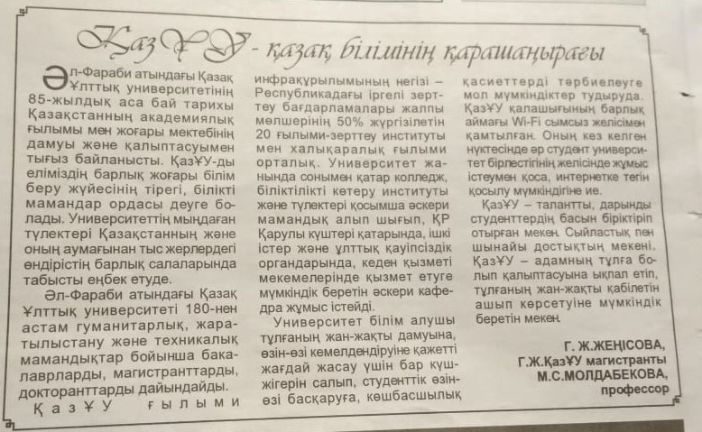«ҚазҰУ – қазақ білімінің қарашаңырағы» |