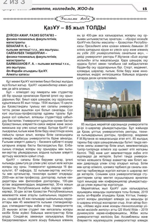 Дүйсен А., Ғазиз Б., Бекалай Н.К., Сайлаубек Т., Баймаханов Ғ.А. |