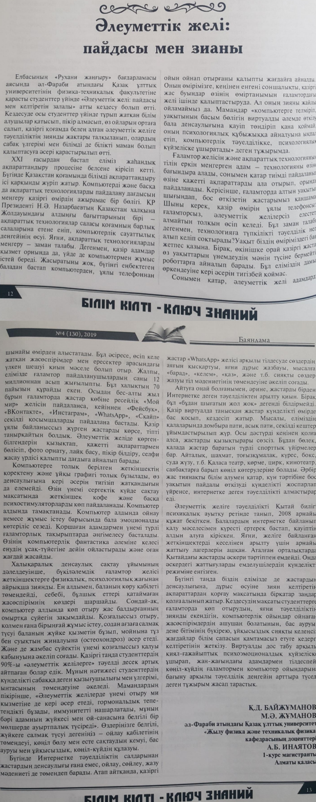«Әлеуметтік желі: пайдасы мен келтіретін зияны» |