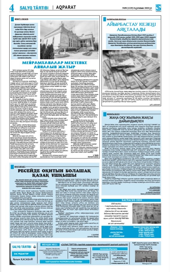 №18 (1769) 29 қыркүйек 2020. -4 б. |