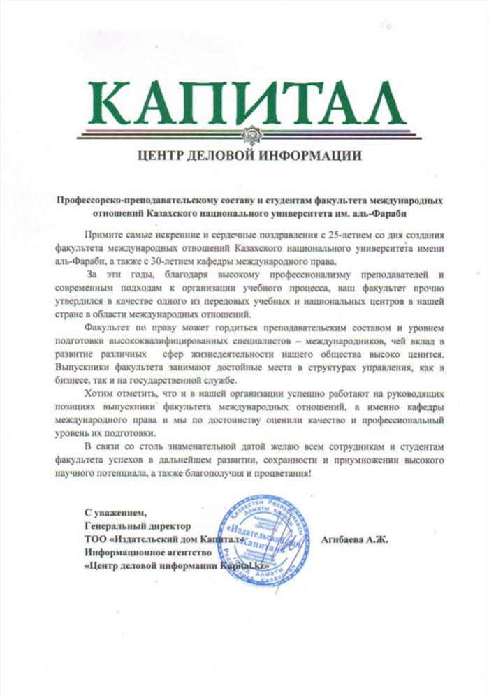 Congratulations from "Kapital Publishing house"