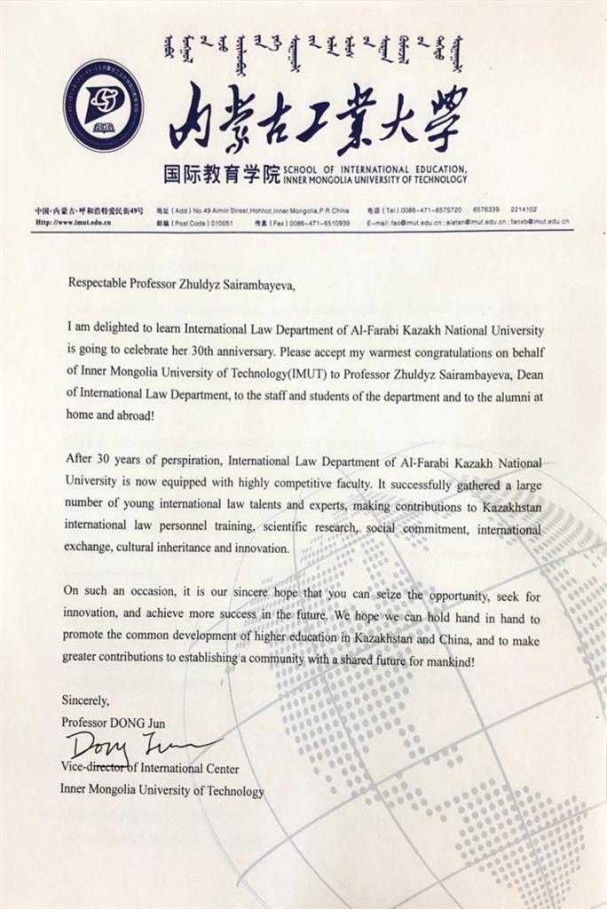 Congratulations from the School of International education Inner Mongolia University of Technology