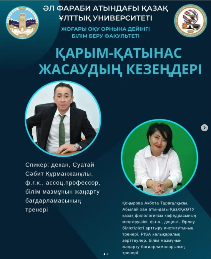 On September 18, 2022, the Faculty of Pre-university Education hosted a training seminar of Ph.D., Associate Professor Konyrova Akbota Turagulovna "stages of communication". The ways of successful implementation of communication are explained. A meaningful, exciting event.