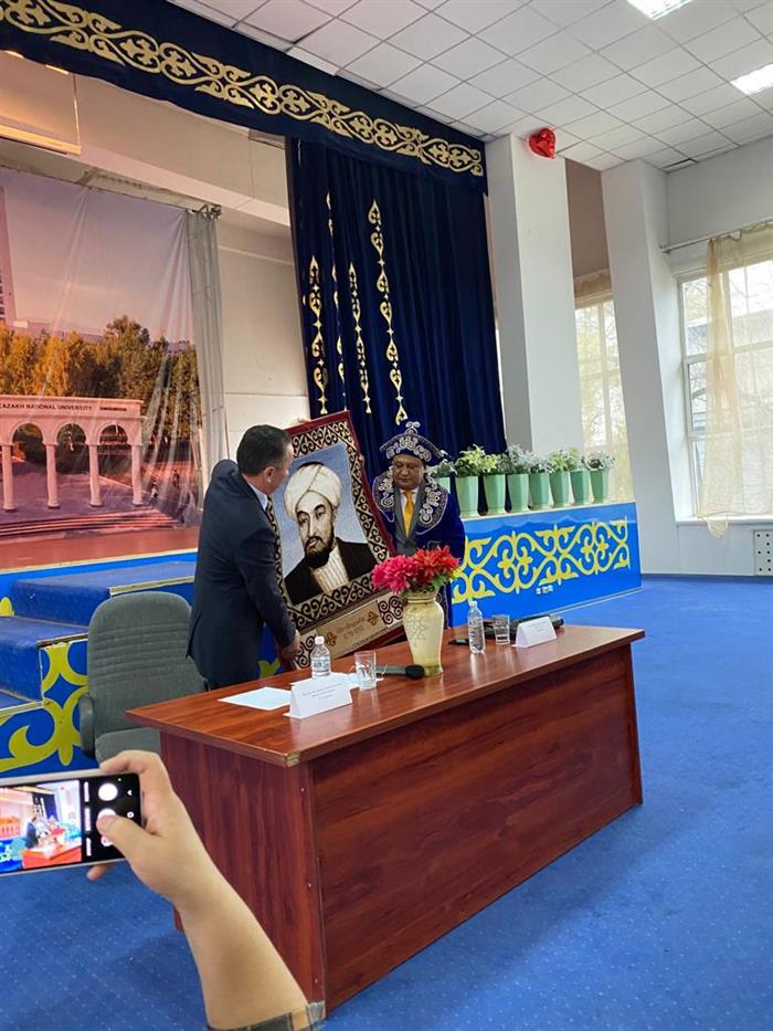 On November 3, 2022, a meeting was held at the Faculty of Pre-university Education with Akim of Bayan-Ulga district Bakytzhan Davilovich. During the meeting, Mr. Bakytzhan told the audience his advice and answered questions. Dean of the faculty Suatai S. K. presented the guest with a gift from the university and thanked him. The audience watched a small concert program prepared by the audience. After the meeting, Bakytzhan Davidovich visited the library of the Al-Farabi Kazakh National University. After visiting the Al-Farabi Museum dedicated to the spiritual heritage of the great great-grandfather Al-Farabi, he got acquainted with the structural units of the library.