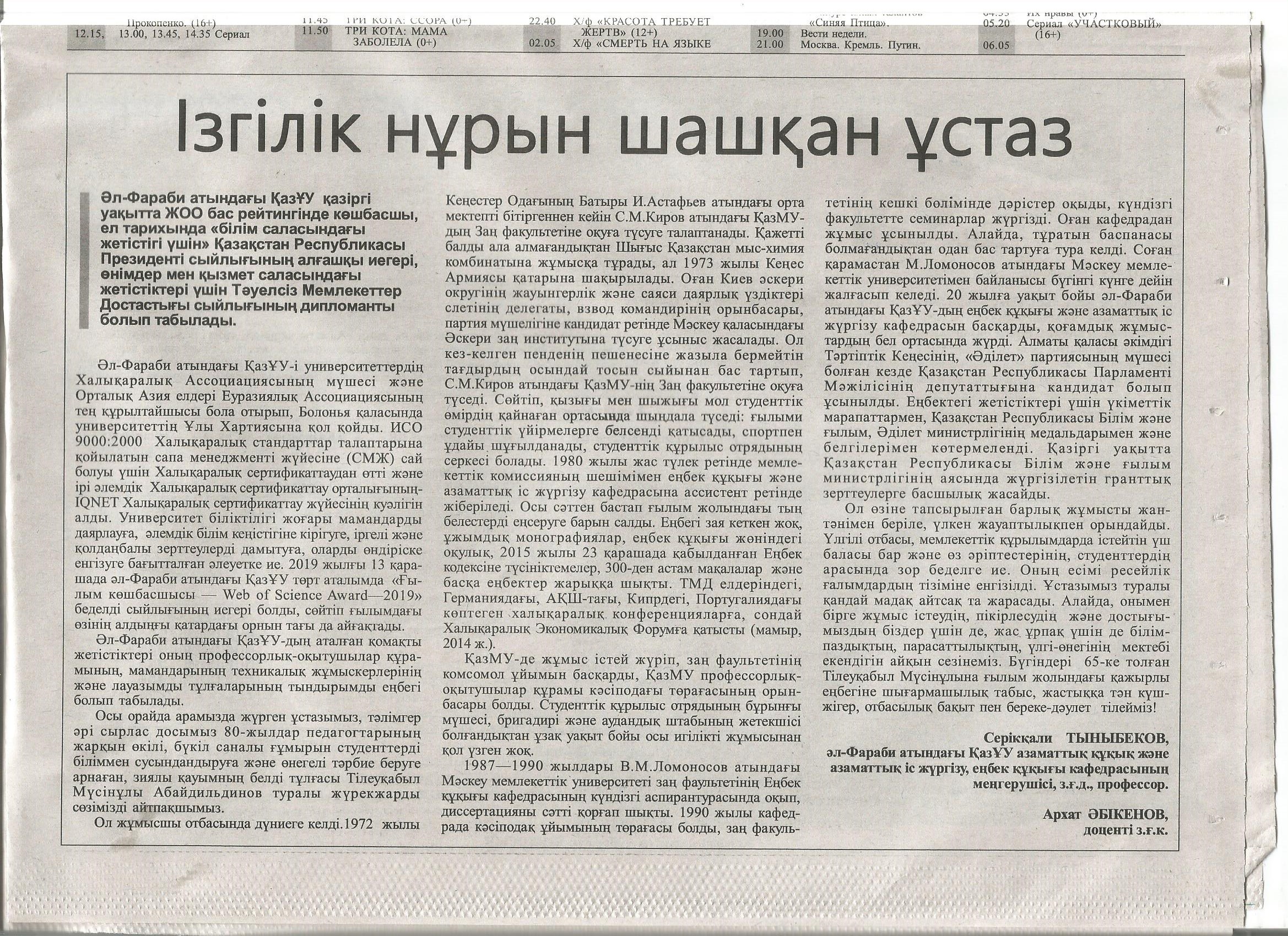| 8 | Университет алдыңғы қатарда | Z. Adanbekova, lecturer |