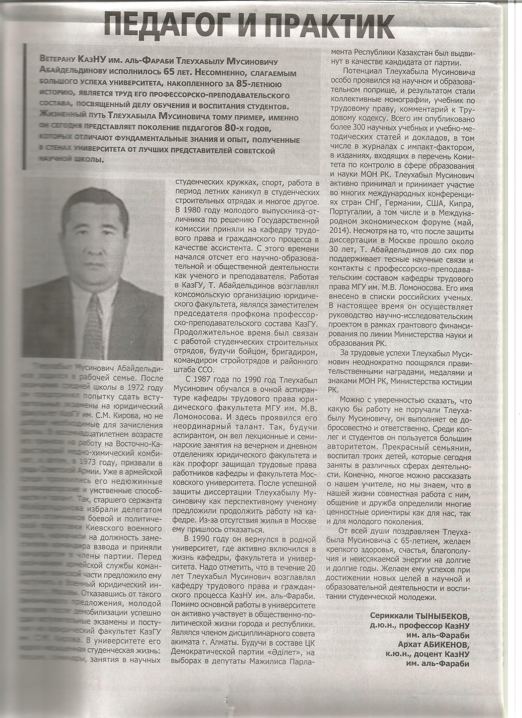 S. Tynybekov, Doctor of Law, Professor, Head of the Department,A. Abikenov, candidate of legal sciences, Associate Professor |