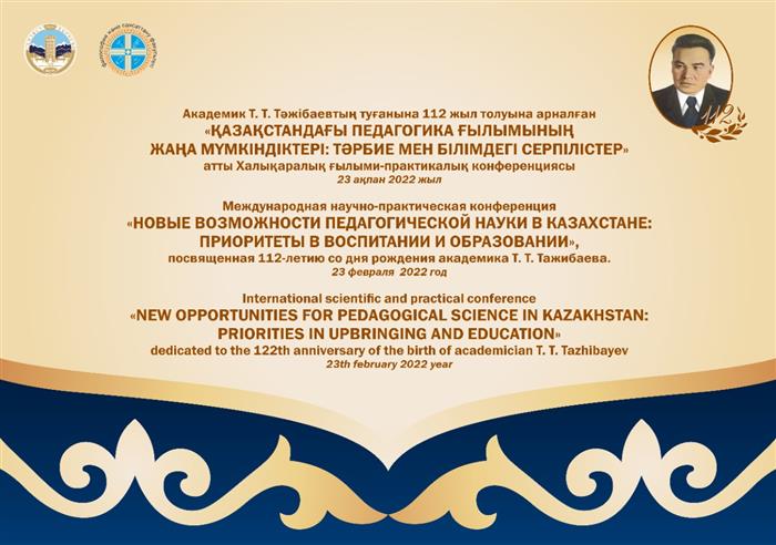 We invite you to take part in the work of the Scientific-Practical Conference "New opportunities for pedagogical science in Kazakhstan: priorities in upbringing and education" dedicated to the 122nd anniversary of the birth of academician T. Т. Tazhibayev.