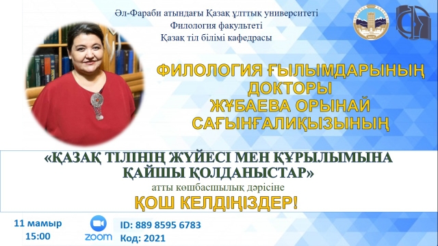 The events specified by the country's leadership are carried out on a large scale. Students of the Faculty of Philology of Al-Farabi University held an online evening "Blossom, my Kazakhstan" on the ZOOM platform. The first deputy chairman of the central Council of the «Organization of Veterans», Honored state and public figure, well-known scientist, academician Ozganbayev Omirzak Ozganbayuly.
