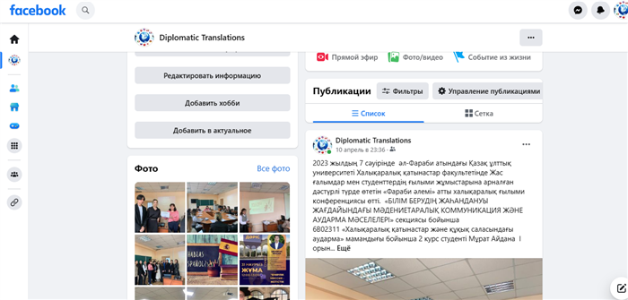 Специальность переводческое дело в сфере международных отношений и международного права (на русском)