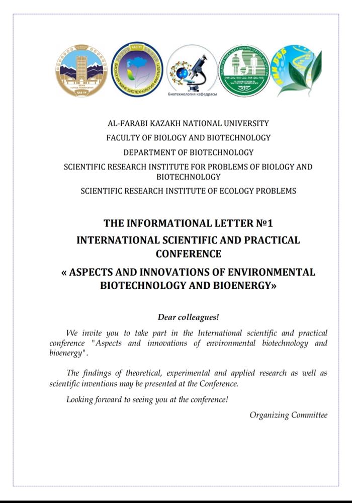 INTERNATIONAL SCIENTIFIC AND PRACTICAL CONFERENCE « ASPECTS AND INNOVATIONS OF ENVIRONMENTAL BIOTECHNOLOGY AND BIOENERGY»