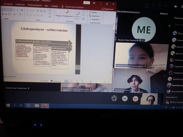 "A. Baitursynov - literary critic ”using the Microsoft Teams platform.The lecturer, concluded that, esthetics-critic,