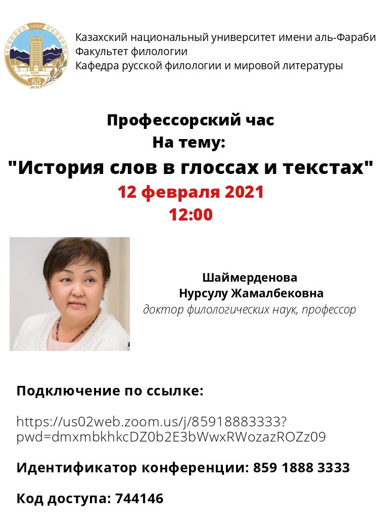 2/17/2021At the Faculty of Philology and World Languages of Al-Farabi Kazakh National University there was another lecture within the project: “Professor hour”. The professor of the Department of Foreign Philology and Translation Studies, the doctor of philological sciences, Temirgali Orazgaliyevich Yessembekov delivered the lecture. The lecture topic was: “The bases of philological text analysis”.