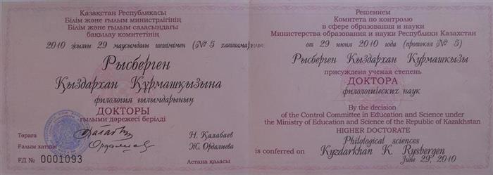 | 10. | Рысберген Қыздархан Құрмашқызы |