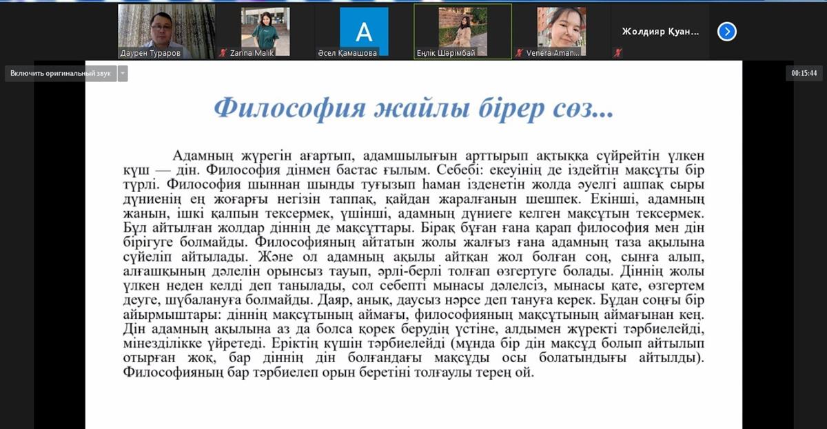 12/11/2020Within the framework of events dedicated to the Independence Day of the Republic of Kazakhstan and the Day of the Economist, Professor of the Department of Economics Dauliyeva G.R. together with the 3rd year students of the specialty "Economics" conducted an intellectual game "Uzdik Economist" for students.