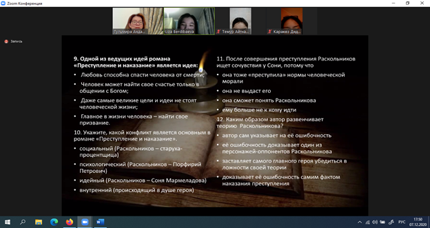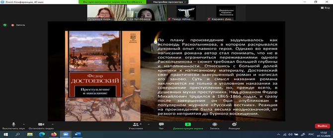 Within the framework of the project "100 kitap", the 2nd year students of the specialty "Economics" held a curatorial hour dedicated to the work of F.M. Dostoevsky's "Crime and Punishment"