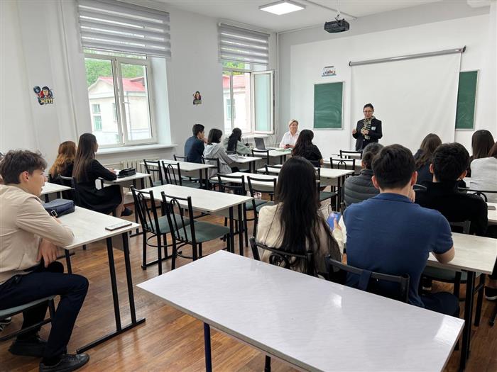 On May 21, 2024, within the framework of the 4th Sustainable Development Goal, teachers of the Department of International Law Nysanbekova L.B. and Altaeva K. Zh. conducted career guidance work at the school №159 named after Altynsarin. Our teachers explained some of the features of the choice of the specialty «International Law», about the high-quality education of students, about the advantages and opportunities at the end of training in this program and career growth they can achieve by choosing the specialty «International Law».