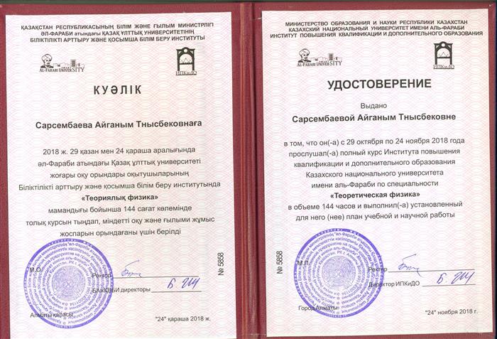 Сарсембаева Айганым Тнысбековна |