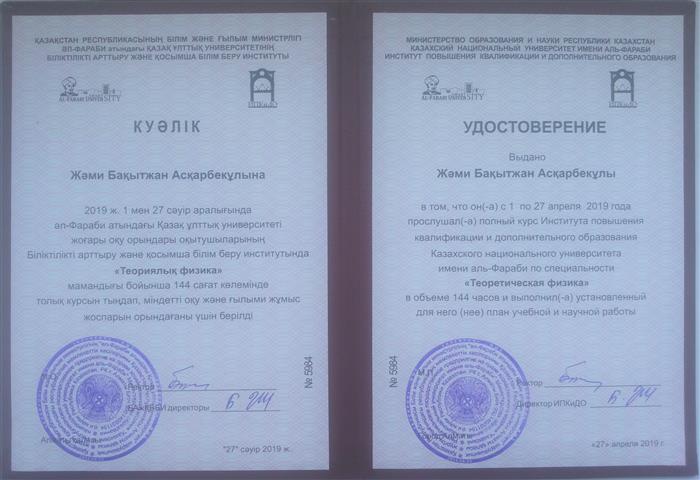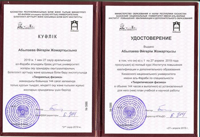 Al-Farabi Kazakh National University, 01.04.2019-27.04.2019 |