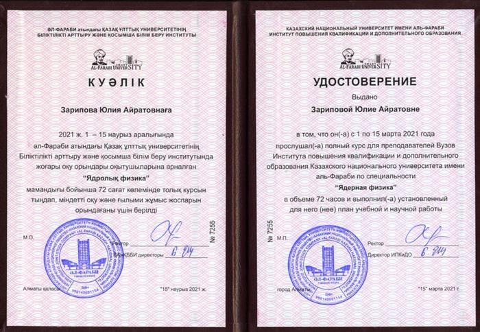 Al-Farabi Kazakh National University, 01.03.2021-15.03.2021 |