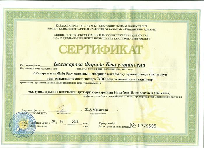 «Өрлеу» біліктілікті арттыру ұлттық орталығы» акционерлік қоғамы 28.04.2018 |