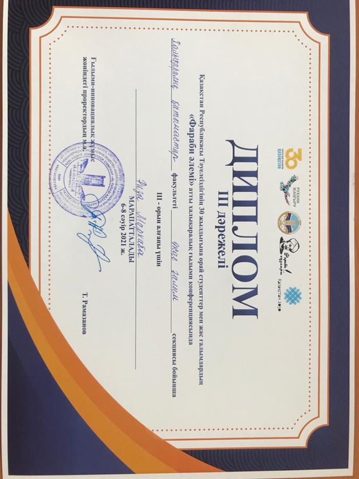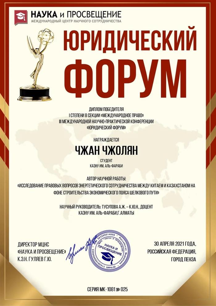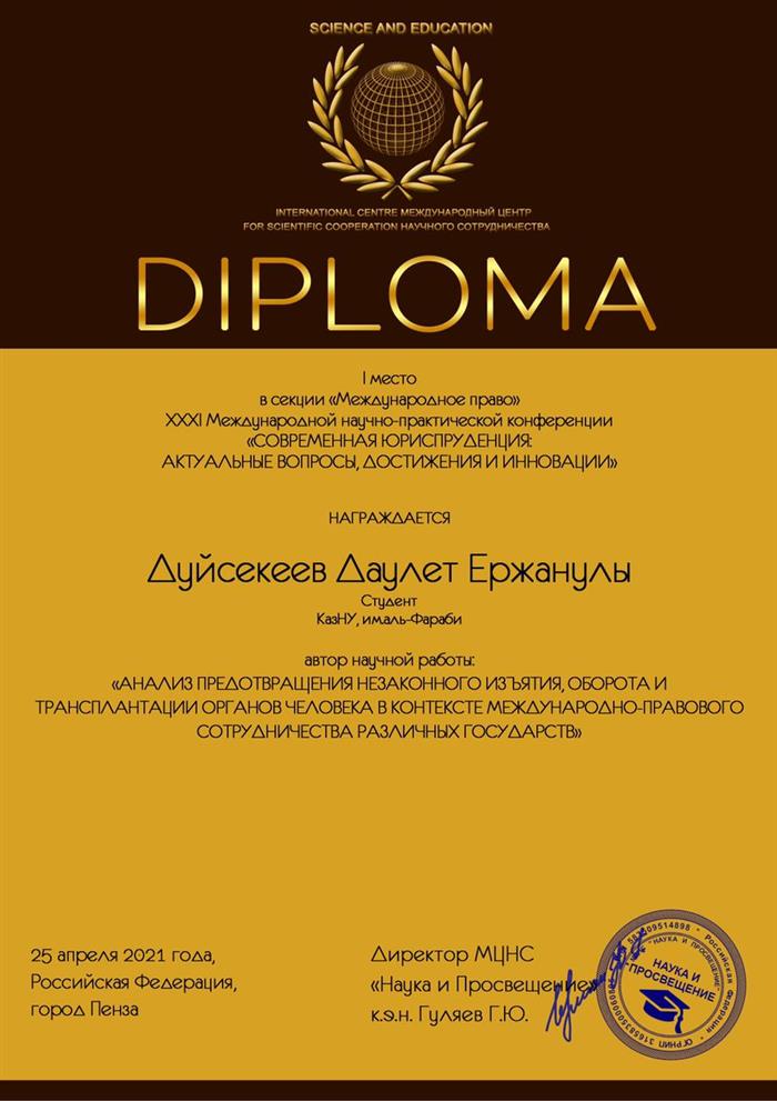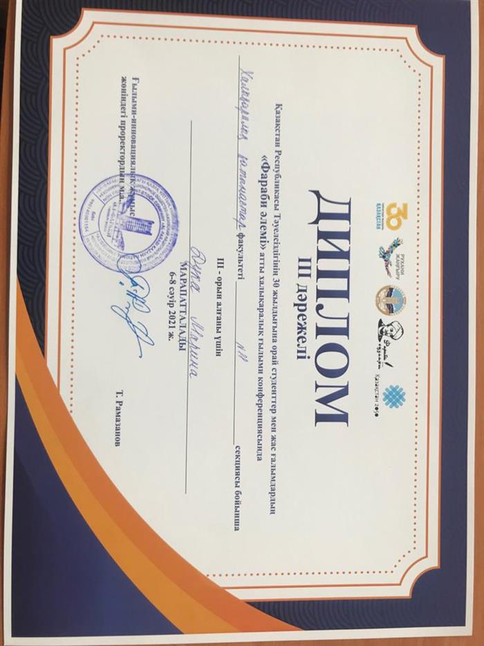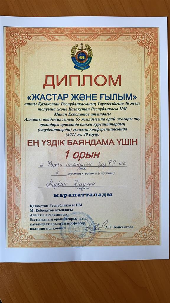 The STATUS of the scientific student circle "Komparativist" of the Department of International Law of the Faculty of International Relations of al-Farabi KazNU