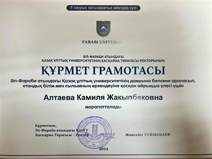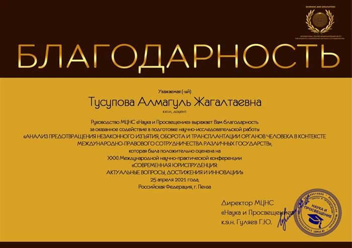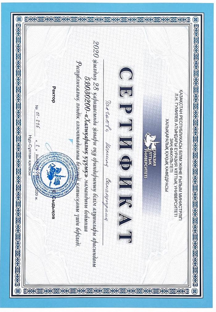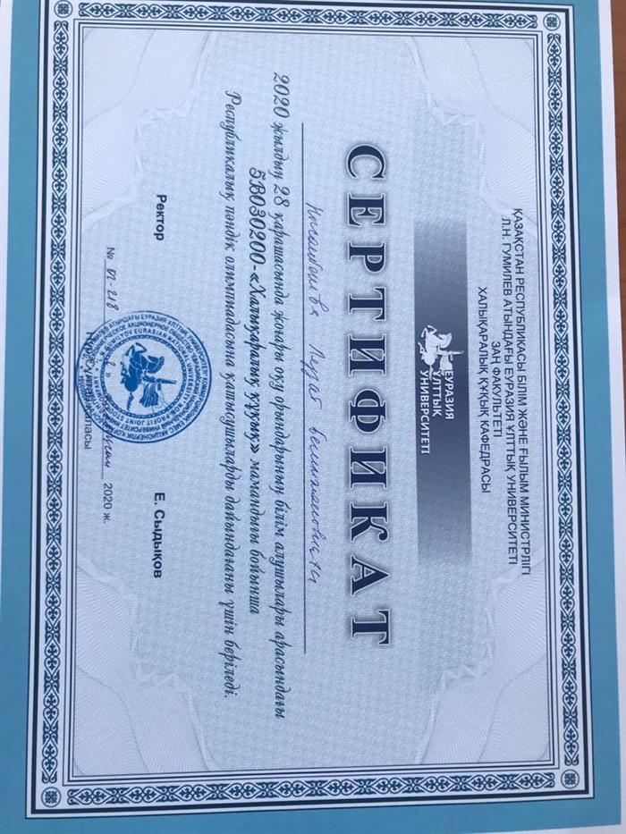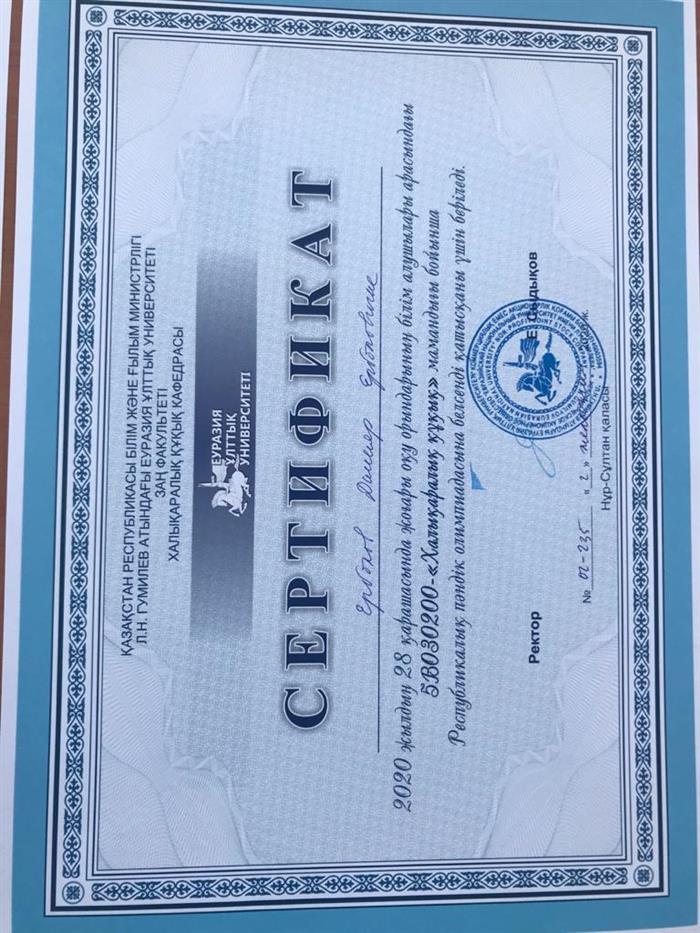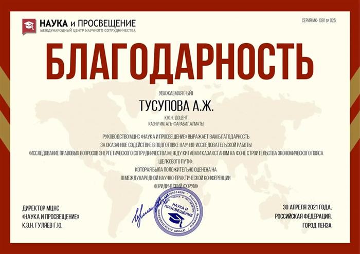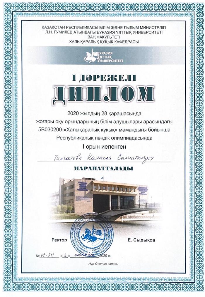 The STATUS of the scientific student circle "Komparativist" of the Department of International Law of the Faculty of International Relations of al-Farabi KazNU