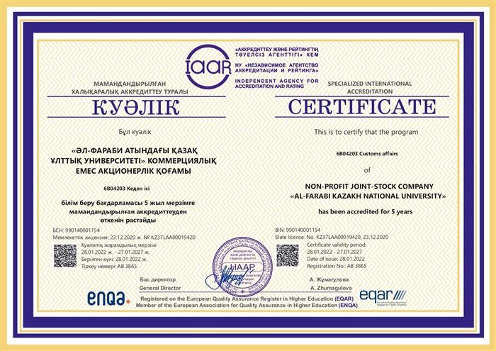 EDUCATIONAL PROGRAM on the specialty of «8D042– Customs affairs»