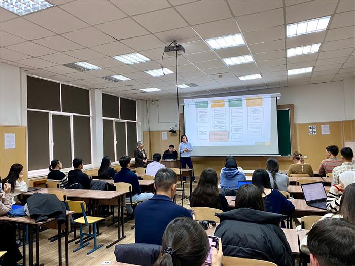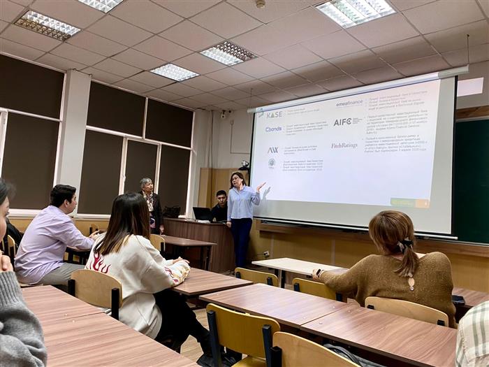 On December 7, at 13.00, a meeting was held at the Faculty of Mechanics and Mathematics with a representative of the largest investment bank in Kazakhstan, JSC Halyk Finance - Zhanna Bekmukhambetova.