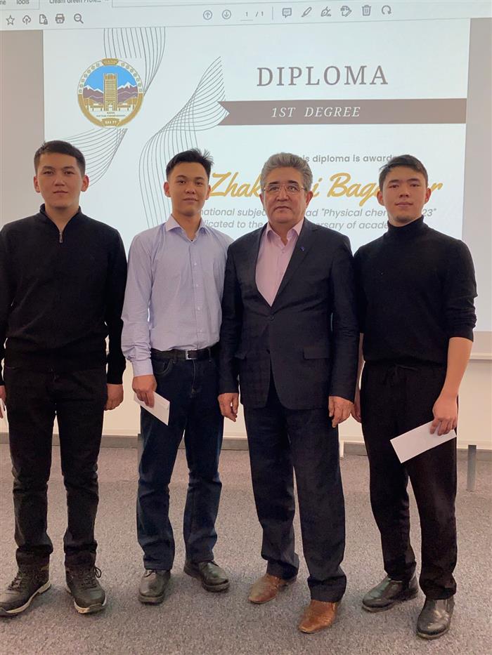 On May 26, 2022, the official visit of the Head of State Kassym-Zhomart Tokayev to the Republic of Kyrgyzstan took place. During the visit, the opening of a branch of the Kazakh National University named after Al-Farabi in Kyrgyzstan took place. To develop and strengthen cooperation in the field of education and science, the Department of Physical Chemistry, Catalysis and Petrochemistry of the Faculty of Chemistry and Chemical Technology organized and held the first international Olympiad "Physical Chemist-2023" on February 22-23, 2023. The subject Olympiad was devoted to the 90th anniversary of the honourable Academician of the National Academy of Sciences of the Republic of Kazakhstan Ospanov Khabibulla Kusainovich. The Olympiad was attended by students of chemical specialties of the Kazakh National University named after Al-Farabi and the Kyrgyz State University named after I. Arabaev.