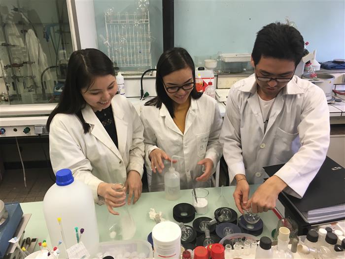 Yessenzhanova N., Serikkanov A. and Kurmansitova A. while studying at the Claude Bernard University Lyon 1, Lyon, France |