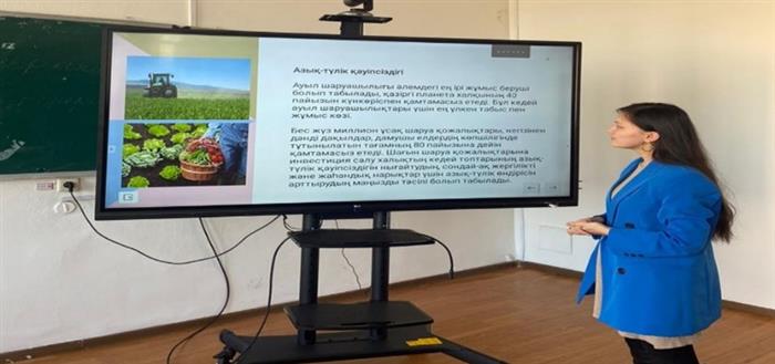Bitechnology Malik A.M. held a curatorial hour on the topic “Elimination ofhunger”.The purpose of the event. To analyze the problems of hunger and foodshortages that arise in the world, to consider ways to solve these problems usingmodern scientific achievements.The students prepared a presentation related to the food shortage in theworld, what actions should be taken to solve this problem. Despite the fact that thisproblem is not getting much worse in the country, many states are struggling withthis situation. The World Food and Agriculture Organization calls for thenecessary measures to be taken. They are designed to meet the urgent food needsof vulnerable segments of the population, strengthen social protection programs,continue the global food trade and help small farmers increase food production.The students discussed the contribution of biotechnologies to the prevention andsolution of this problem. They shared their opinion about the importance of manynecessary biotechnological products.