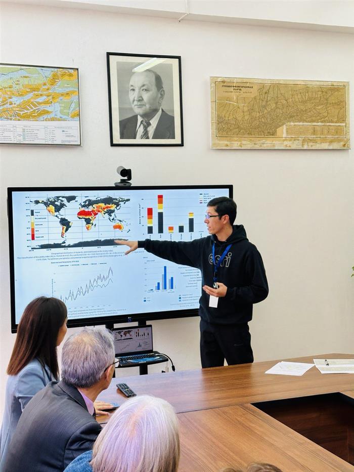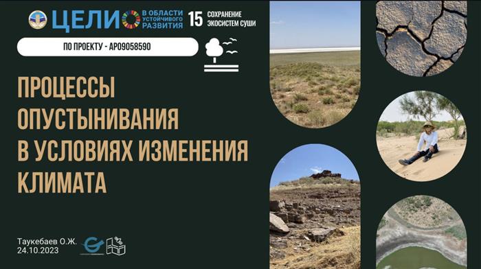 One of the most serious manifestations of land degradation is "anthropogenic desertification" caused by human activity and climate change. A large area of modern deserts is of anthropogenic origin. According to the UN, drylands cover up to 43% of the earth's surface in more than 100 countries and soil degradation has already affected 70% of the world's drylands. The rate of desertification in the world has now reached 7-10 million hectares per year. In addition, every year another 20 million hectares lose productivity due to erosion and sand encroachment. Most of the territory of Kazakhstan is located in the arid zone and about 76.1% of the territory is subjected to desertification and land degradation processes in different degrees. About 191.1 million hectares out of 273.5 million hectares of the territory of the Republic are subjected to desertification. More than 100 thousand ha are subjected to secondary salinization. The workshop presented the main results of the project based on meteorological, hydrological indicators, field studies and remote sensing data.Speaker: O.J. Taukebaev, Deputy Director General of the cluster of engineering and knowledge-intensive technologies, senior lecturer of the Department of Cartography and Geoinformatics.Seminar participants: faculty members, masters and doctoral students of the Faculty of Geography and Nature Management.