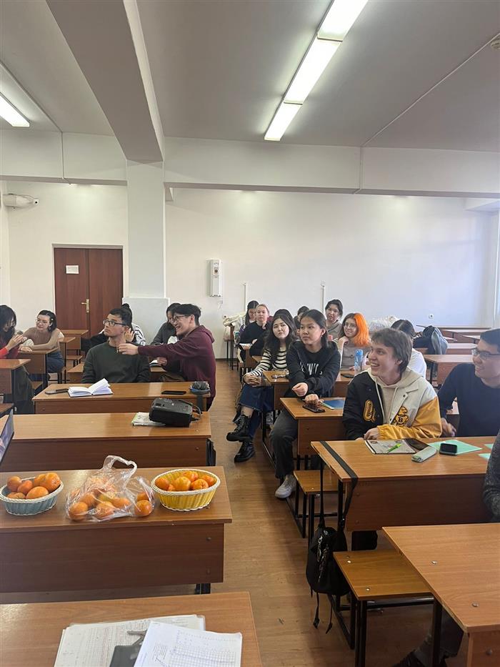 December 6, 2023 teachers of the Department of Biotechnology doctor of biological sciences, professor Karpenyuk T.A., candidate of biological sciences, associate professor Goncharova A.V. (with the participation of 1st year undergraduate students Bekkulievа D.A., Nurkhozhaevа L.M.) held a meeting on the topic “We are what we eat” with 3rd year students of the specialty “Biotechnology”. Nutrition is one of the main environmental factors that determine human health, normal growth and development, physical and mental performance, life expectancy, and the body’s resistance to diseases and harmful environmental factors.