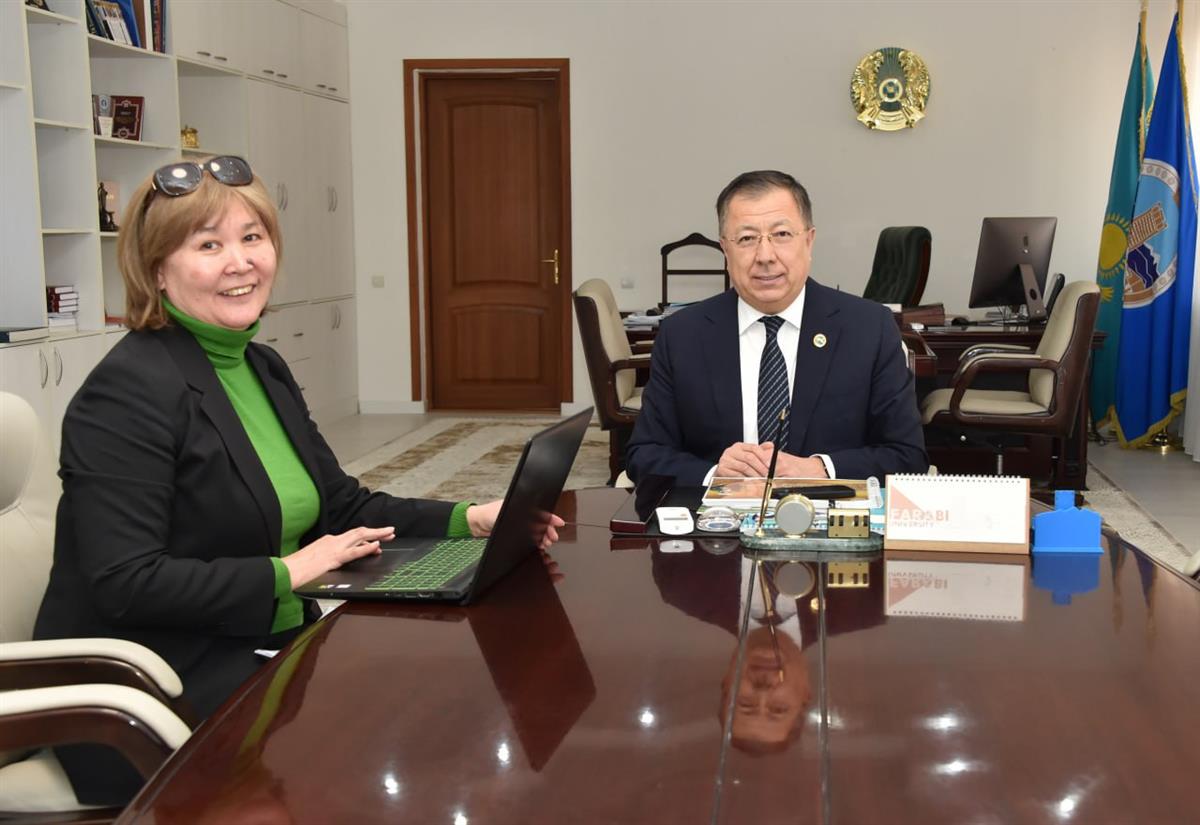 4/8/2023During a working visit to the Al-Farabi Kazakh National University, Deputy Prime Minister of the Republic of Kazakhstan Altai Kulginov visited the Al-Farabi Library. The working group included Minister of Science and Higher Education of the Republic of Kazakhstan Sayasat Nurbek, Deputy Akim of Almaty Asem Nusipova and other officials.