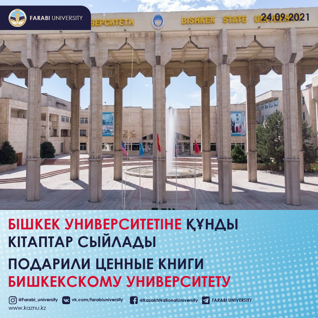 Al-Farabi Kazakh National University donated valuable literature, books, monographs and textbooks to the scientific library of Bishkek State University named after K. Karasayev.