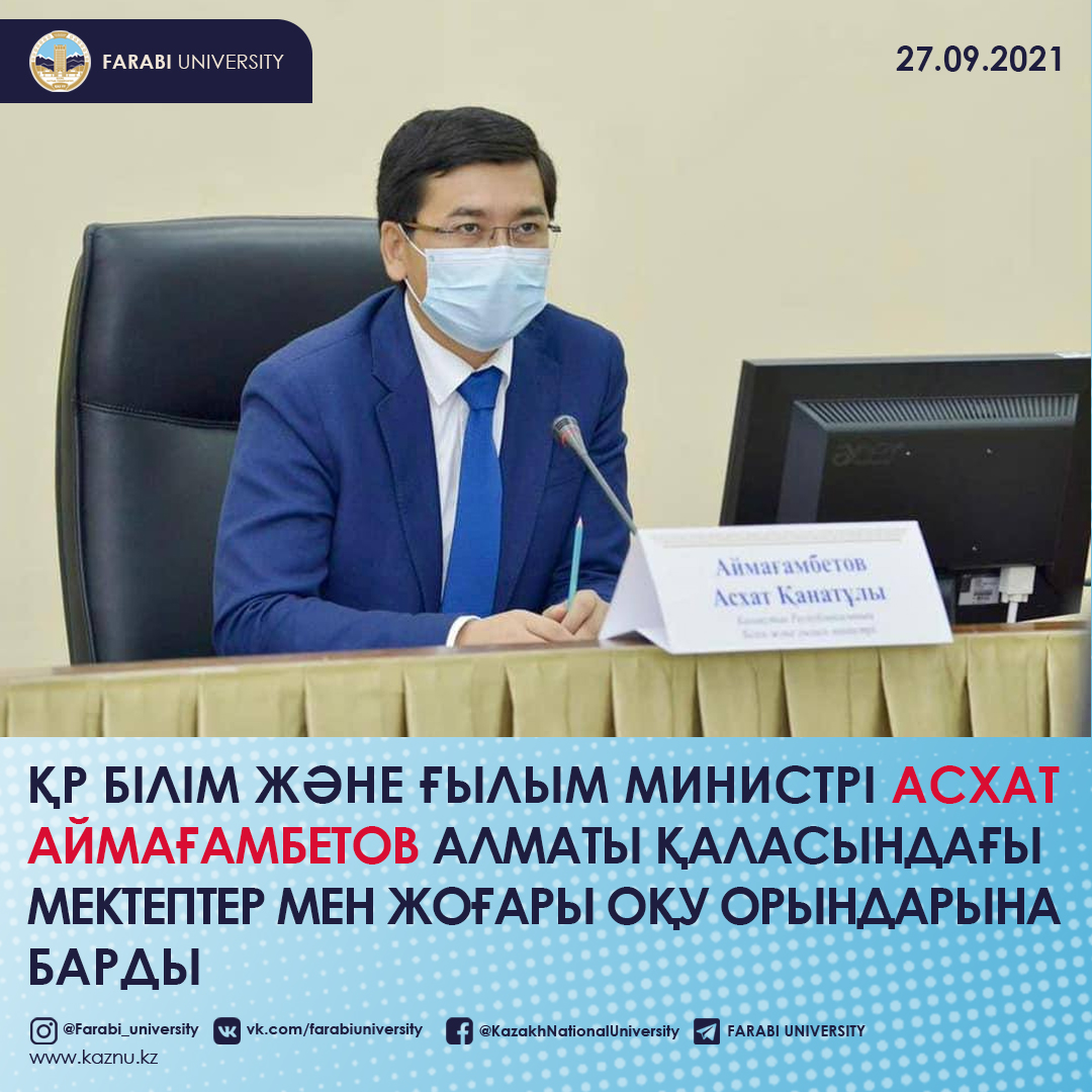 On September 30, 2021, at 11.00 o'clock, the Chairman of the Board-Rector of the Al-Farabi Kazakh National University Zhanseit Kanseituly Tuimebayev will hold a reporting meeting online.