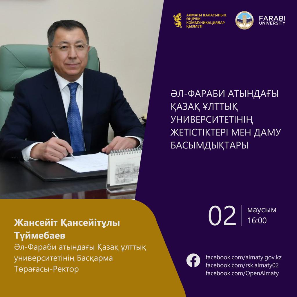 June 2 at 16.00 Chairman of the Board - Rector of the Al-Farabi Kazakh National University Zh.K. Tuimebayev will hold an online briefing at the site of the Regional Communications Service of Almaty.