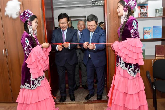 The true pearl of the event was the opening of the educational and creative laboratory "Egemen Qazaqstan" at the Faculty of Journalism, which was filled with books for reading and drawing. At the opening ceremony, the rector of the university, academician Mutanov Galimkair Mutanovich awarded the chairman of the board of the Republican newspaper Egemen Kazakhstan, Darkhan Kuandykuly Kydyrali with the medal "For Labor Distinction".