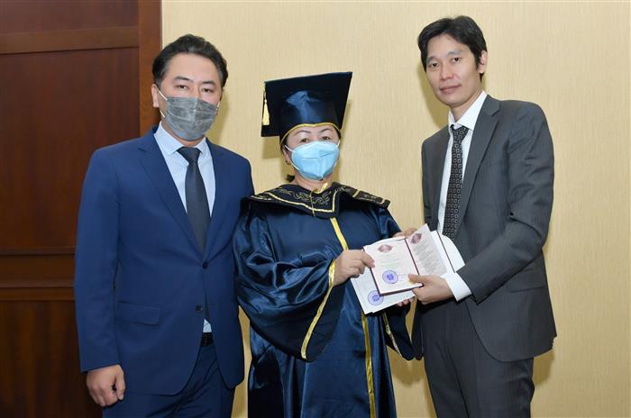 Askar Khikmetov, Vice-Rector of KazNU, and Mukhtar Bolatkhan, Director of Al-Farabi Business School, spoke at the solemn ceremony, presented diplomas and wished the graduates success in their work and further career development in management. Dean of the Faculty of Medicine and Healthcare of KazNU Zhanna Kalmatayeva also congratulated the Masters of Business Administration and noted in her speech that despite the COVID-19 pandemic and the new conditions for distance learning, they have successfully completed the program and defended their dissertations.