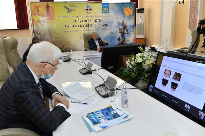 During the meeting, Bazbek Davletov spoke in detail about his research work. According to the scientist, the problem of chronic pain was the motivation for the creation of the new drug. The scientist mentioned that pain relievers that were used 200 years ago, in particular morphine, are still used. These substances, which have a natural basis, have a short-term effect on the relief of pain in the body. “This does not solve the problem of chronic pain, moreover, they are toxic to the body. As a result of many years of research, botulinum molecules have been created with a modified structure and analgesic effect for up to 23 days, tested in experimental studies with animals. " According to the scientist, botulinum nerve toxins by themselves do not harm the body, they are used in cosmetology, for migraines, strabismus and other diseases. This approach will help people who suffer from chronic pain and the negative effects of chronic opioid use. Led by the moderator of the round table, Professor, Head of the Department of Biophysics, Biomedicine and Neuroscience Almira Kustubaeva, the discussion with the leading scientists of the university was continued, who asked questions about the projects and research activities of the scientist, and discussed plans for joint work in the field of neurobiology.